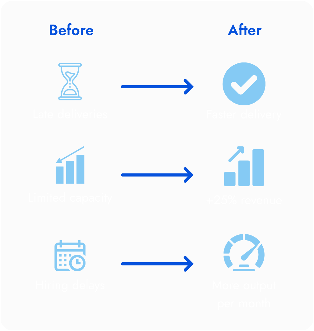 By externalizing development work, they focused their internal team on sales and strategy. Revenue grew 42% YoY, with zero additional hires.