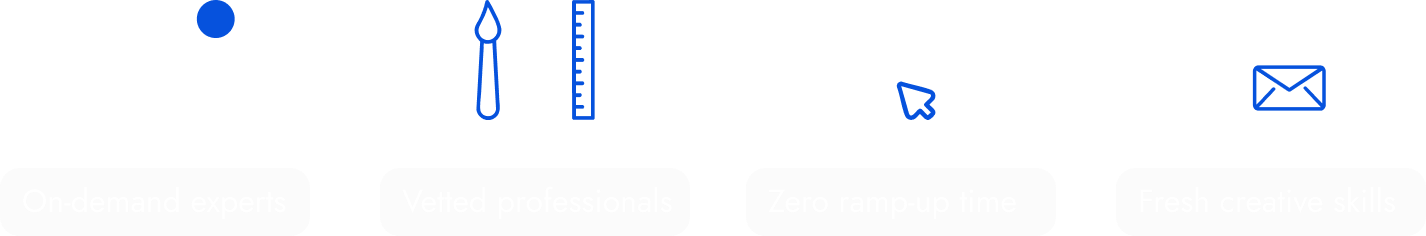 Recruiting and onboarding a new creative role can take months — months you might not have when a big client project lands. Our remote creative teams are ready in days, not weeks, and integrate seamlessly with your processes.